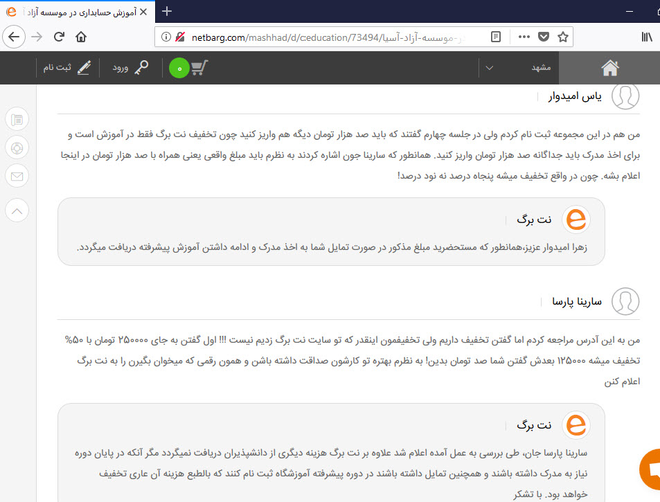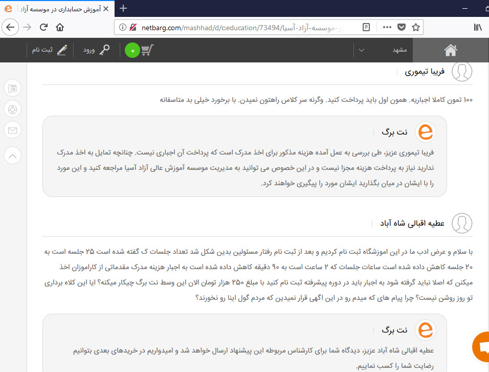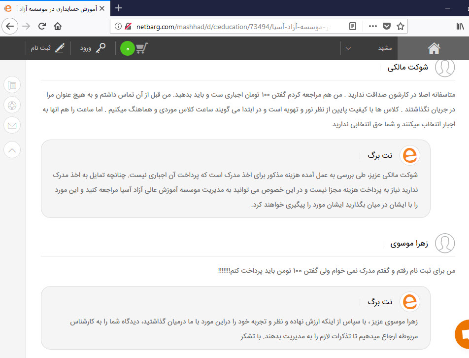 چند نمونه دیگه از تخلفات و بدقولی های این موسسه که دوستان توی سایت نت برگ گذاشتنو براتون بصورت عکس و با آدرس گذاشتم مطالعه کنید .